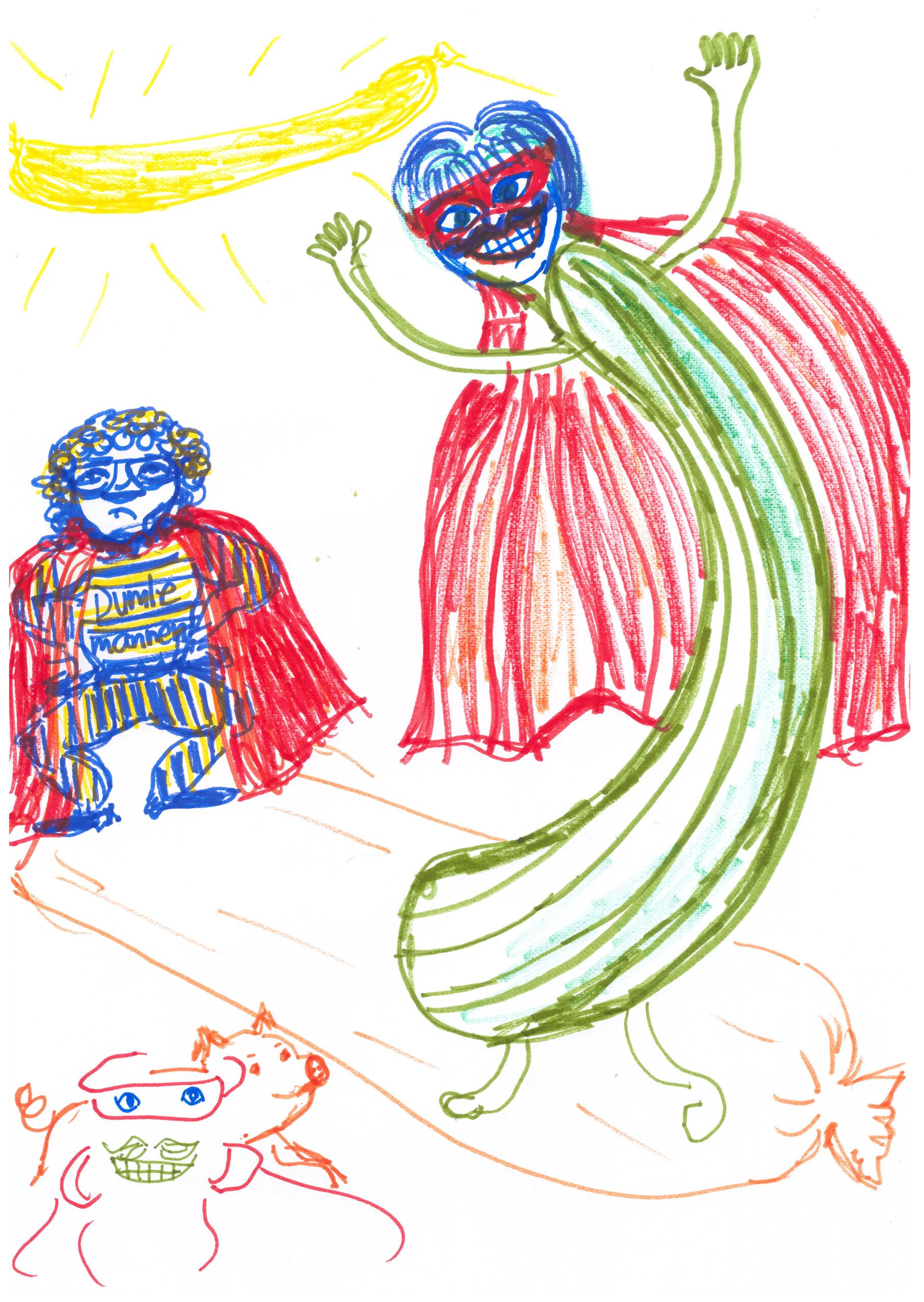 Det var en gång två bästa kompisar. En gurka som heter Gagulken och Dumlemannen. Dom hade båda en mantel och ögonbindel. Dom är på en jättestor korv. Dom tittar ner i stan och ser att något händer där nere. Det kommer en gris som rånar en bank. Grisen Babundan rånade den gyllene korven från banken. Gagulken och Dumlemannen ville få tillbaka den. Grisen hade tagit korven och ville inte ge tillbaka den…