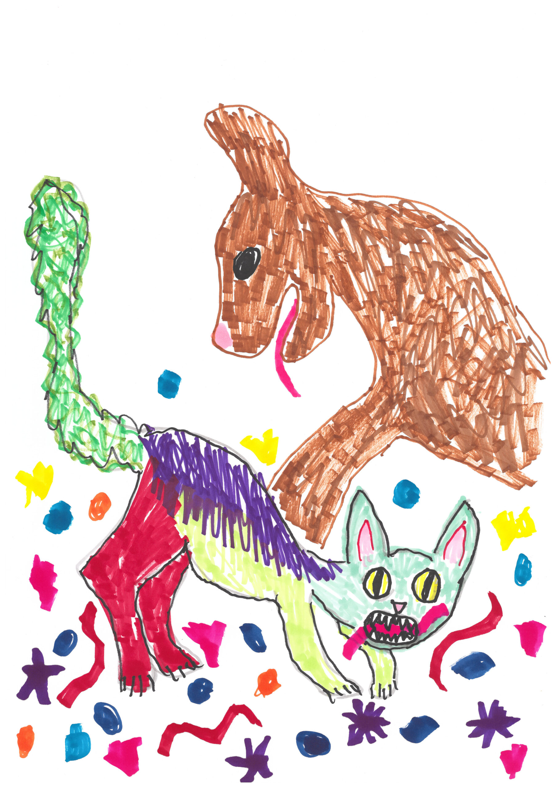 Det var en gång en dag i ett godisland. Där fanns det en hund som var stor och stark och en katt. Dom önskar sig en stor och snäll vän. Men det fanns en elak räka som stoppa dom…