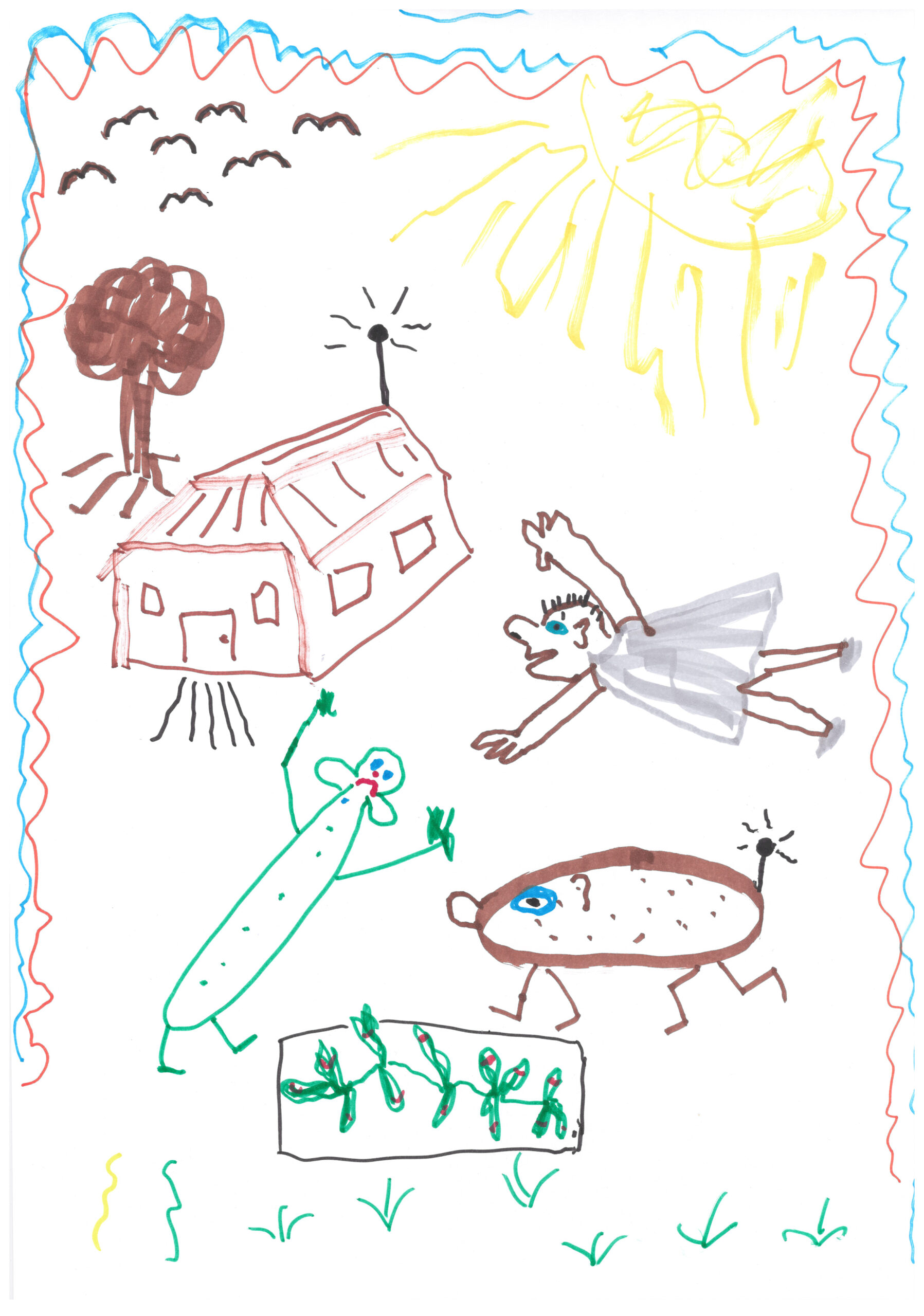 En dag när det var soligt så cyklade den magiska människan med sin bästa kompis kartoffeln. Människan hade alla superkrafter, det kallas elemento. När de var och cyklade såg de ett partytält där det var grisar som dansade. Då såg grisarna kartoffeln och kartoffeln började springa och de kom till en mörk skog. Kartoffeln såg en mörk plats som var gjord av choklad och den såg en gurka med sin familj som var jätteglad. Människan och kartoffel såg att den dumma gurkan och dens familj åt all choklad från chokladvärlden. Människan blev lite ledsen för att hon inte hade någon familj och ville också äta choklad men gurkan och gurkans familj åt hela chokladvärlden…