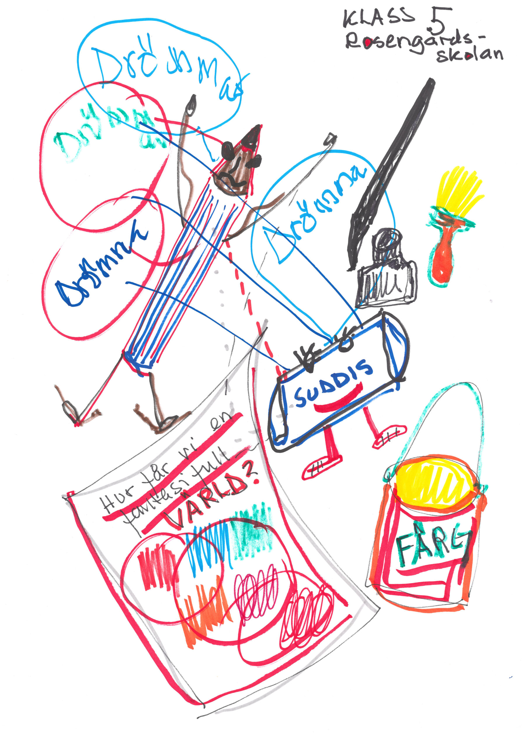 Pennan och suddin hittar varandra och blir vänner. De hade samma drömmar, att göra världen mer fantasifull. De lärde känna varandra för att de har samma vänner. De tänkte fixa världen med fina drömmar. För att deras fiende tuschpennan ville måla över alla fantasiböcker …