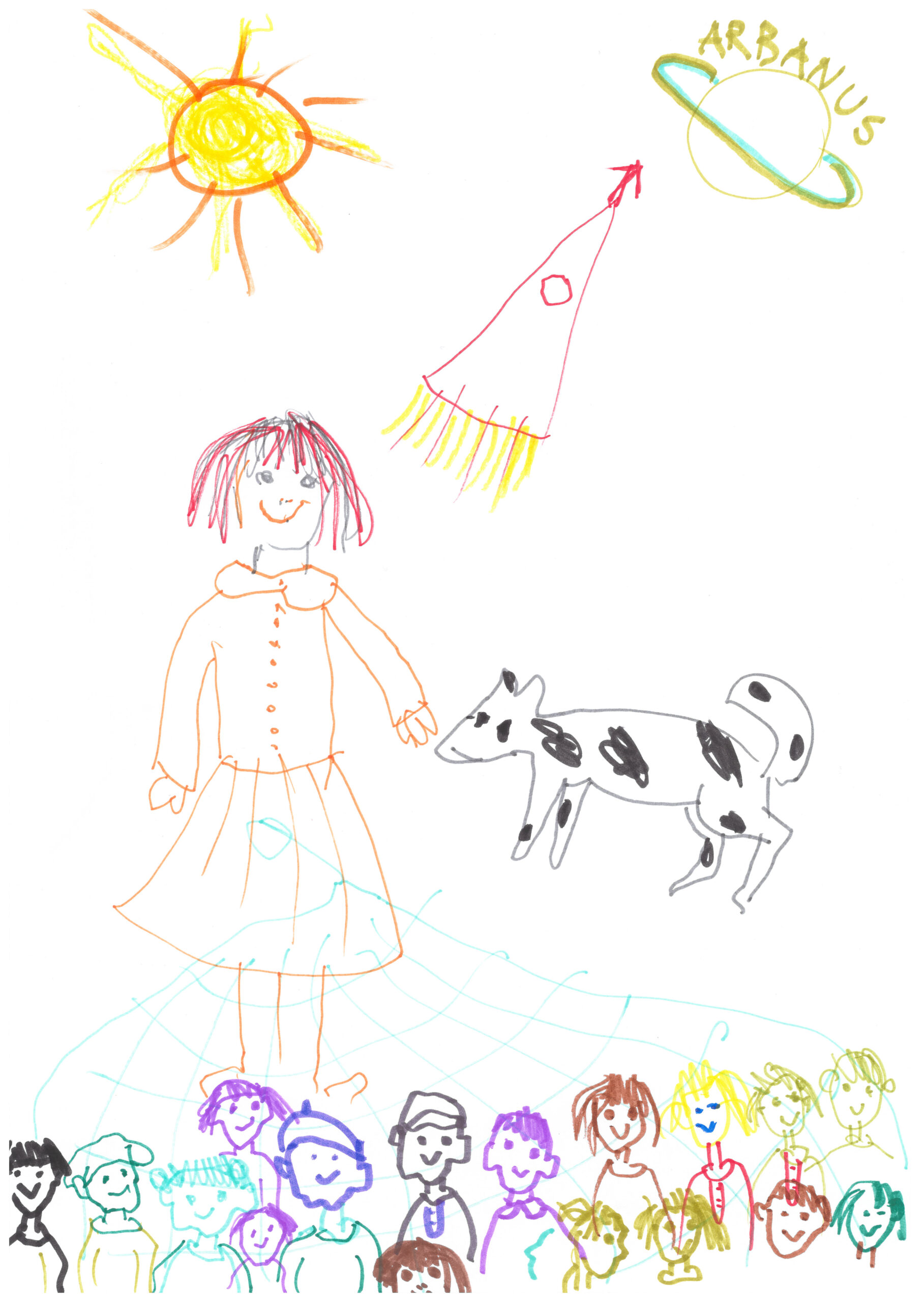 Det var en gång en tjej och tjejens hund. De har byggt sin egna rymdraket. Sen åkte de till planeten Arbanus som har liv precis som planeten Tellus.