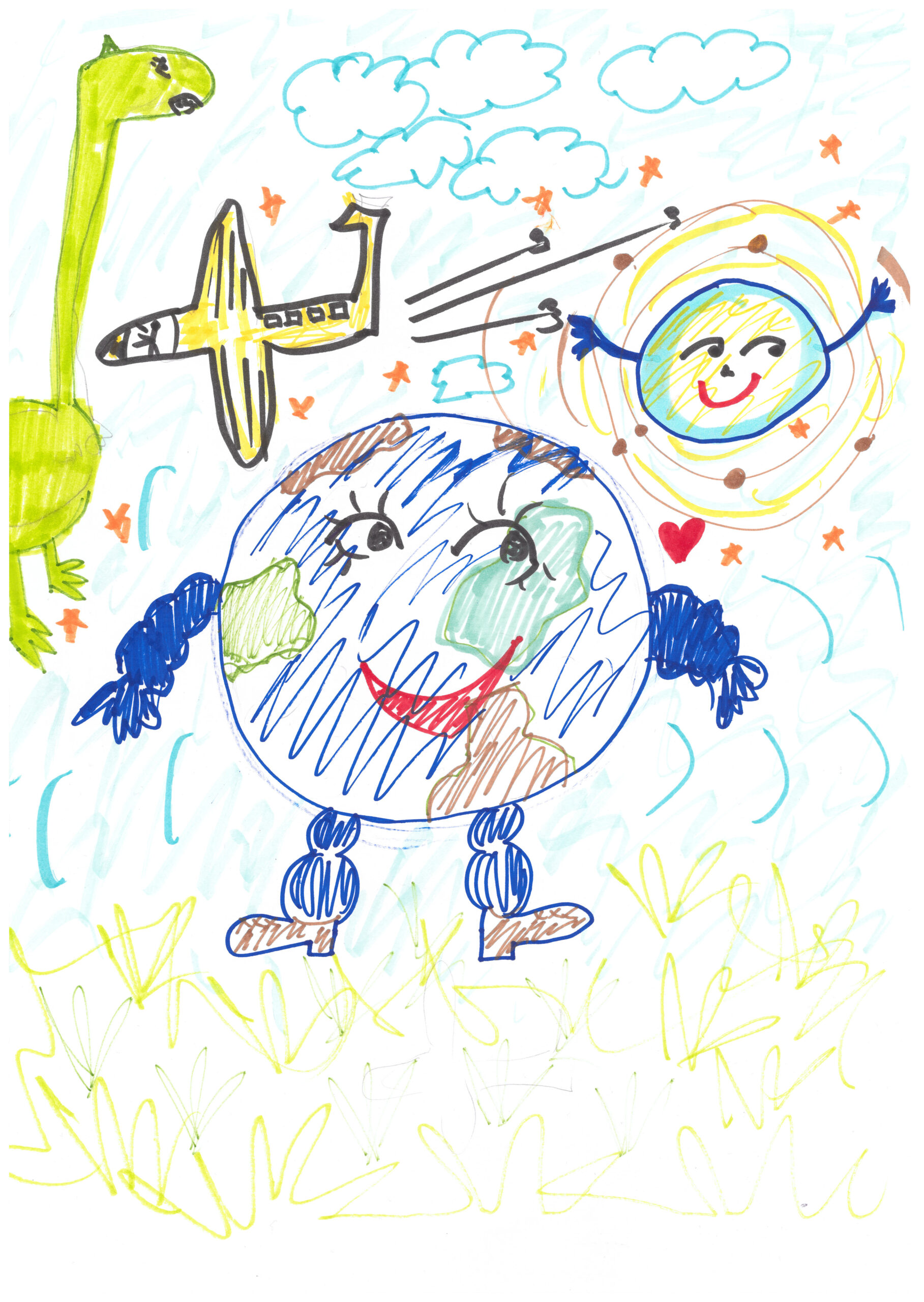 Det var en gång en levande stor planet. Den hade en bästa vän som heter Saturnus. De ville träffa ett flygplan. Sen kom en jättestor T-rex som blockerade flygplanet…