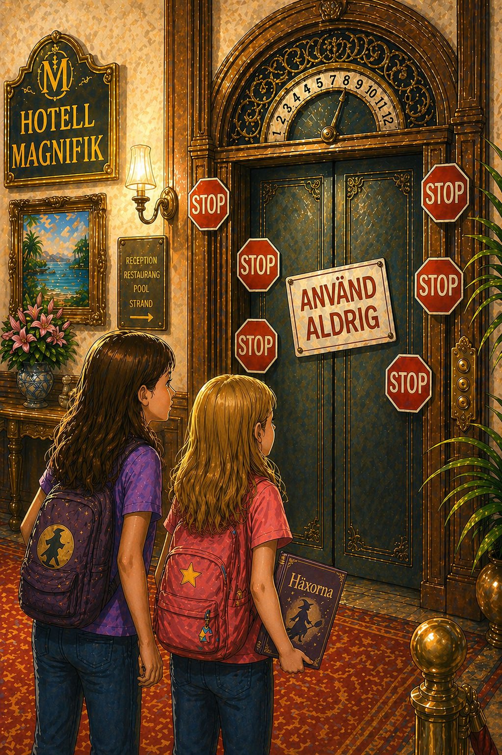 Idag skulle Luna och hennes familj åka till hotellet Magnifik. De skulle bo där i en vecka. Hotellet ligger nära stranden och är väldigt populärt. När Luna och hennes familj kom fram till hotellet träffade Luna sin bästa kompis Lina som också bodde där. Luna och Lina var barndomsvänner och gick i samma skola. De hade läst en bok som hette Häxorna och det var därför de just valde hotell Magnifik för att se om det fanns på riktig.