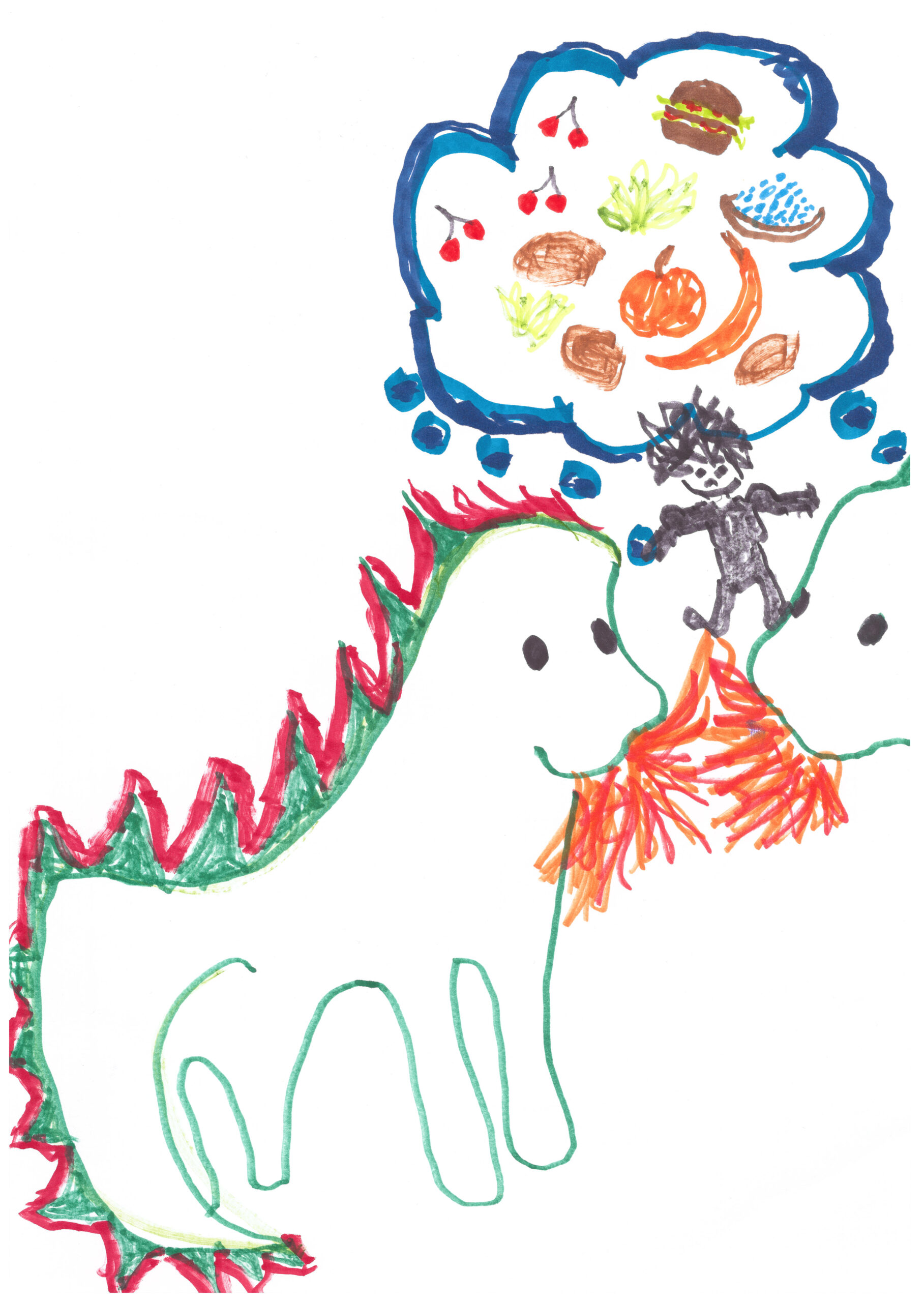 Det var en gång en zombiedinosaurie som hade en bästa vän som var en zombiedinosaurieflicka. De ville ha mycket mat som vaktades av ett troll med muskler och trollet ville ha mycket pengar men deras pengar räckte inte. De önskade sig mat…